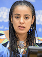 Mariam Wallet Aboubakrine, Tuareg, is a member and former chair of the United Nations Permanent Forum on Indigenous Issues. Mariam is a member of Tin Hinan, an association working for the defense, promotion and development of indigenous peoples in Africa, in particular the Tuareg (Mali, Niger, Burkina Faso, Algeria, Mauritania and Libya). With a Masters in Humanitarian Action from the University of Geneva, her studies focused on interventions in armed conflict, marginalization, natural disasters, and later in her studies, the role of traditional medicine in Tuareg Mali. Currently, Mariam advocates for Indigenous rights in Africa, particularly focused on improving the living conditions of Tuareg people.